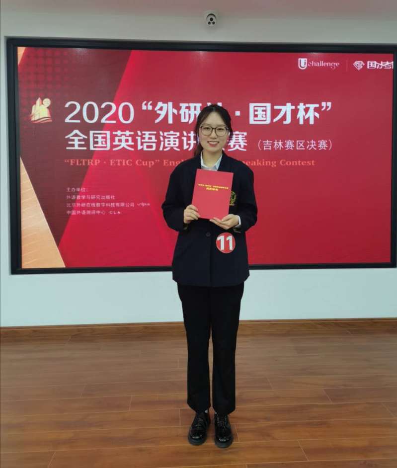 新闻网讯(通讯员 张梓琪)2020年10月31日上午八点,“2020•外研社国才杯”演讲大赛吉林赛区决赛在长春理工大学举行。本次省级决赛采取线上与线下相结合的竞赛形式。组委会根据线上命题演讲评审结果,在43名选手中选拔出12 名选手进行线下比赛。在指导老师路静的带领下,公司威廉体育williamhill18级员工张梓琪荣获一等奖。