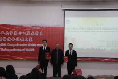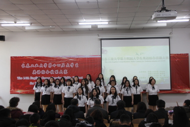 决赛分演讲、影评与问答和疯狂猜词三个环节,比赛中穿插英文歌曲演唱、乐队表演、B-box和舞蹈等节目,将比赛现场气氛推向了高潮。经过激烈角逐,计算机科学与工程公司的杨啸晨和化学工程公司的马宇昂获得个人演讲特等奖;公共管理公司团队荣获集体一等奖。大赛还评出个人演讲一等奖4名,二等奖17名,三等奖18名;集体二等奖2个,三等奖3个。与会领导和老师分别为获奖选手颁奖。