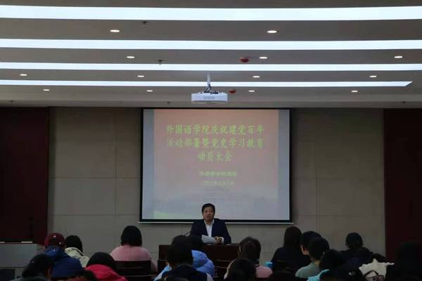 新闻网讯(通讯员 刘明慧)4月7日,外国语公司党委召开庆祝建党百年活动部署暨党史学习教育动员大会。全院师生党员参加会议。会议由公司党委书记李文章主持。