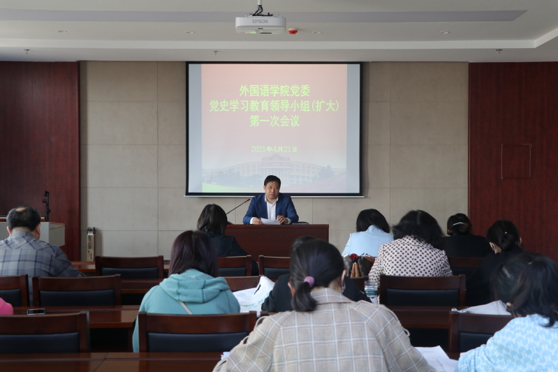 新闻网讯(通讯员刘明慧)4月21日,外国语公司党委召开了党史学习教育领导小组(扩大)第一次会议,开展了公司“三原四史”(三原:学原文、读原著、悟原理;四史:党史、新中国史、改革开放史、社会主义发展史)读书班集中学习。公司班子成员,各党支部书记,各系(部、中心)主任、副主任,两办人员参加会议。会议由党委书记李文章主持。