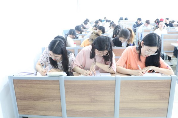 第二轮比赛是俄语书写比赛,书写内容是丘特切夫的《涅瓦河上》,在主持人发布书写内容以及书写稿纸后,开始15分钟倒计时,同学们埋头静坐,认真书写。