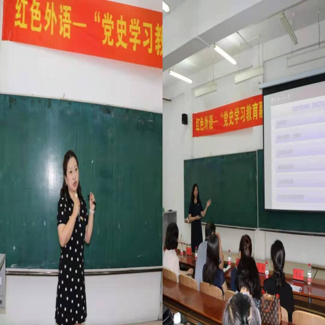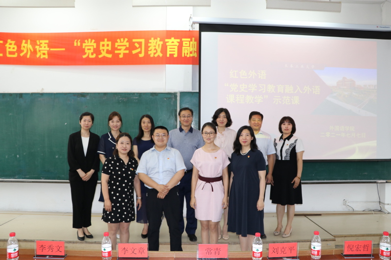 为了上好这堂示范课,公司党委高度重视,从英日俄各专业及公共外语教学部选拔了优秀教学骨干主讲,并就如何将党史学习教育更好融入外语课程教学,进行了认真的备课,组织了预审和研讨,力求为全院教师做好示范。课堂上,来自英语系的赵艳宇老师、俄语系的张晓薇老师、日语系的宋卓时老师、公共外语教学部的赵雪老师,先后就《英语国家社会与文化1》《高级俄语1》《日本概况2》《大学英语》四门课程进行了精彩展示,分别从不同的角度深入挖掘、融入了党史元素,充分体现了“红色外语”的主题,为全院教师在公司产品中不断深化党史学习教育和课程思政建设作出了榜样,得到了与会领导、教师的充分肯定。