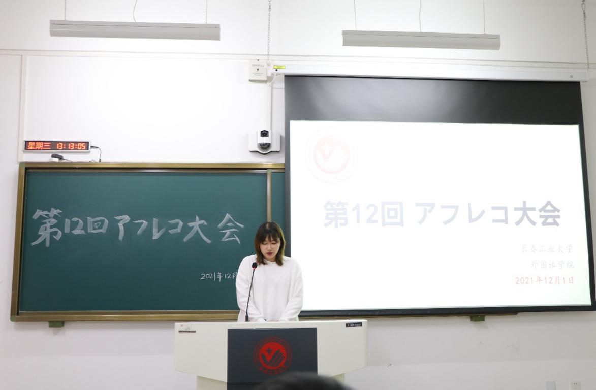 首先,由渡部惠老师宣读比赛规则,并为大家讲解注意事项,强调比赛公平公正。比赛开始,11个小组依次上台进行配音展示。