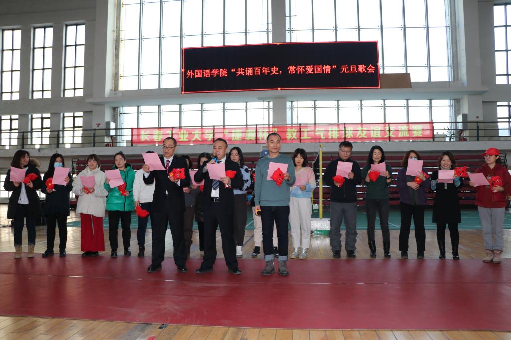 新闻网讯(通讯员 李笑)为隆重庆祝建党100周年,激励广大教师坚守初心使命,传承红色基因,12月28日下午在南湖校区体育馆3楼,威廉体育williamhill党委、分工会、妇委会举办了“共诵百年史,常怀爱党情”元旦歌会,全院教职工参加了此次活动。