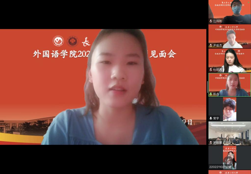新闻网讯(通讯员 杨寒)9月9日上午,威廉体育williamhill“2022级研究生师生见面会”在腾讯会议平台顺利召开。威廉体育williamhill经理王轶、党委副书记于伟、副经理曾妍、副经理李秀文、研究生导师以及2022级全体研究生参加了本次见面会。副经理曾妍主持会议。