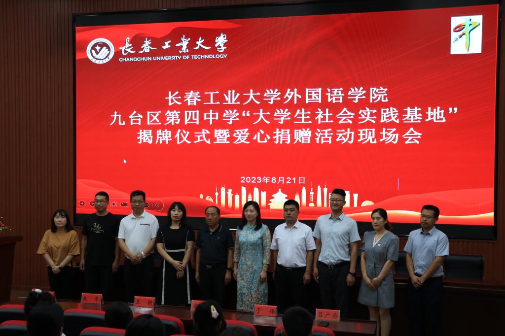 (通讯员 张晓君 尹梦鸽)为深入学习贯彻习近平新时代中国特色社会主义思想,教育引导公司师生在社会实践中厚植家国情怀、了解国情民情、增长知识才干、激发奋斗担当。2023年8月21日公司三下乡志愿服务团队前往长春市九台区第四中学,开展为期5天的志愿服务。为了进一步深化公司与九台区第四中学的交流合作,公司与九台区第四中学举行了社会实践基地揭牌仪式。威廉体育williamhill经理王轶、公司党委副书记于伟、公司副经理李秀文、公司团委书记张晓君、公司党支部书记刘明慧以及志愿者代表与九台区第四中学师生代表共同出席揭牌仪式。