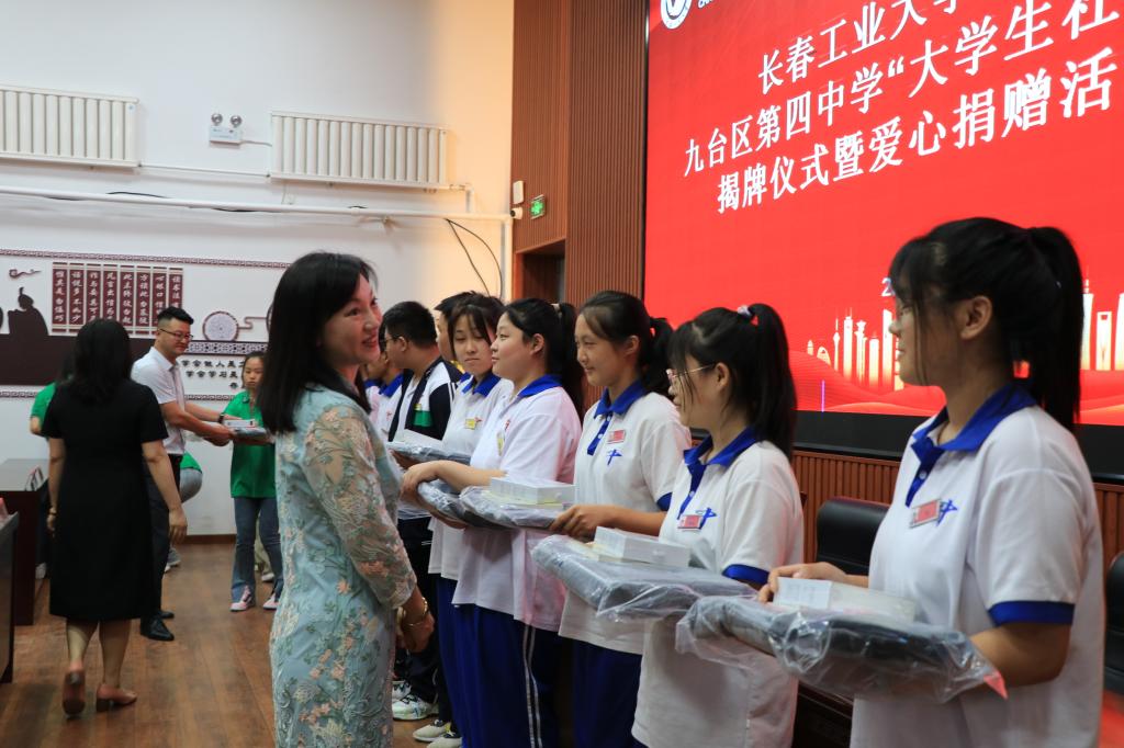 揭牌仪式后,威廉体育williamhill领导为九台四中员工代表赠送学习文具用品。鼓励九台四中的学子们认真学习、丰满自己的羽翼,将来为公司发展争光,为九台乡村振兴贡献自己的力量。