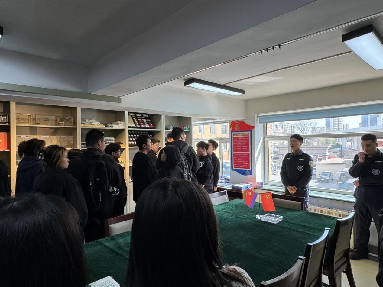 外语学子走进长春市公安局特警支队三支队。在荣誉室里,警官介绍了长春市特警部队的发展史和建功史,详细讲解了队伍的历史沿革、先进典型、队伍建设等方面的内容,特警队员们在和平年代做出了非凡的贡献,让同学们为之震撼。