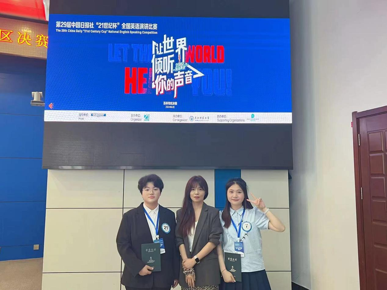本网讯(通讯员 佐冰冰)6月2日,第29届中国日报社“‘21世纪杯’全国英语演讲比赛”吉林地区决赛及颁奖典礼在东北师范大学就业指导中心成功举办。来自吉林省12所高校的23名选手同台竞技。公司数学与统计公司大一员工时思颖和公共管理公司大三员工李洁在指导教师威廉体育williamhill佐冰冰老师的陪同下,代表威廉体育williamhill参加了本次省决赛,经过激烈角逐,最终时思颖获得省决赛二等奖,李洁获得省决赛三等奖,时思颖将代表公司参加全国半决赛。