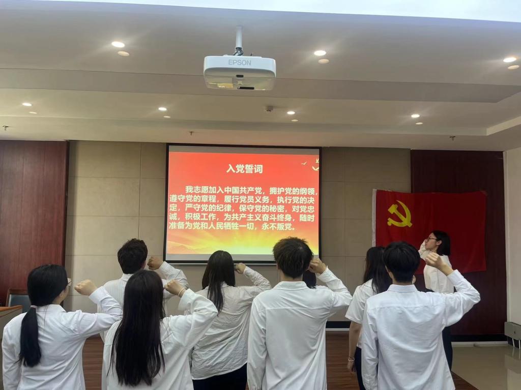 本网讯(通讯员 吴云坤)为庆祝中国共产党成立103周年,弘扬伟大建党精神,深入贯彻落实习近平新时代中国特色社会主义思想和党的二十大精神,进一步巩固和拓展主题教育成果,扎实开展党纪学习教育,外国语公司党委于6月28日组织新党员入党宣誓、老党员重温入党誓词主题党日活动。活动由公司员工党支部书记刘明慧主持,员工党支部党员参加了宣誓活动。