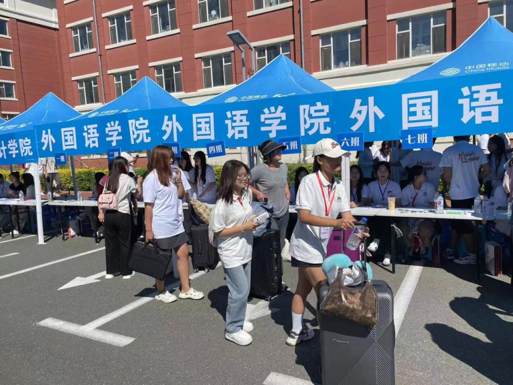 用心保障,外语关怀暖人心。公司领导、老师们莅临迎新现场,亲切慰问在迎新现场的志愿者们,详细询问迎新情况和保障举措,并与在场的新生和家长亲切交谈。公司今年在迎新现场增加“专业咨询台”,方便家长回答关于专业方面的疑惑。