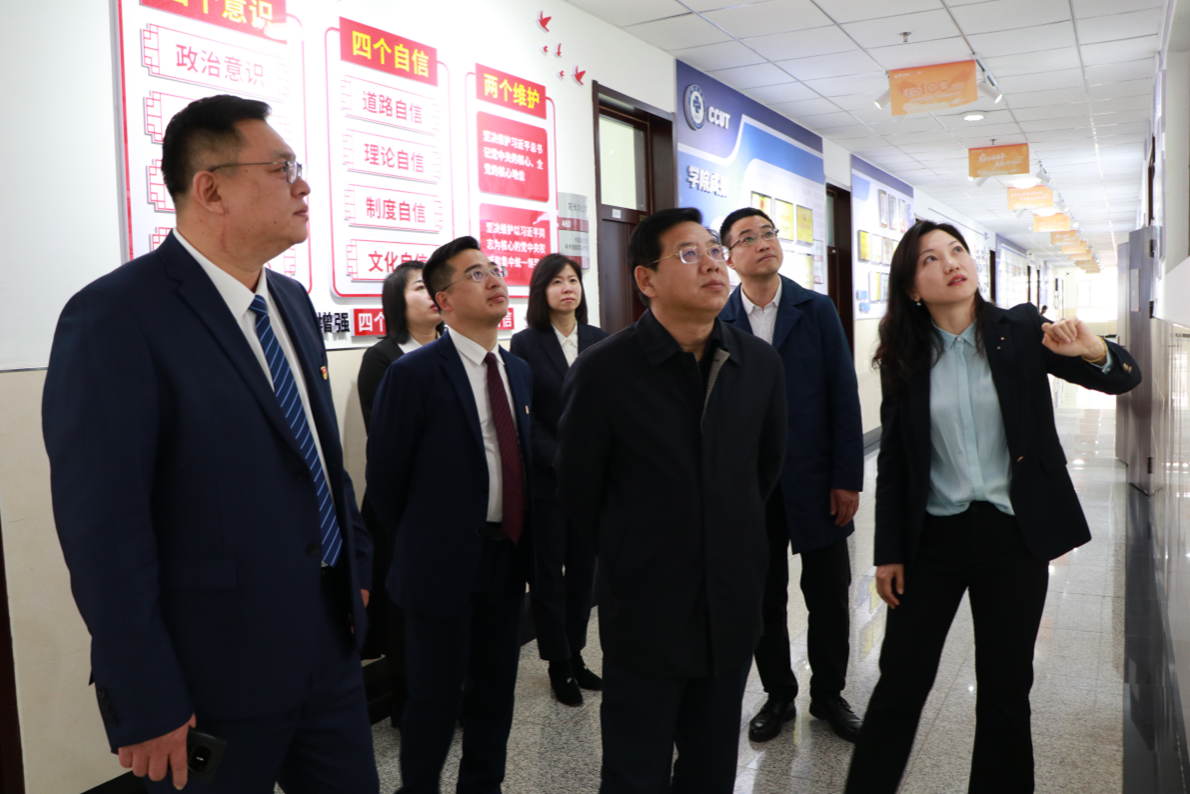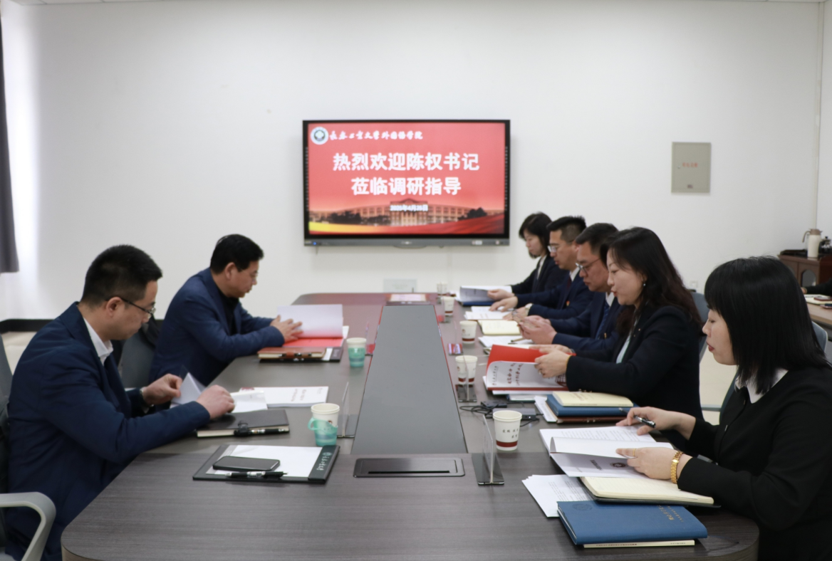 陈权在公司班子成员陪同下,实地调研了公司网络数字语言实验室、同传实验室、电台室的建设和运行以及系部设置等情况,参观了公司廊道文化,深入了解公司发展历程、团队风采及办学成果等情况,对公司在推动公司改革发展中发挥的积极作用给予充分肯定。