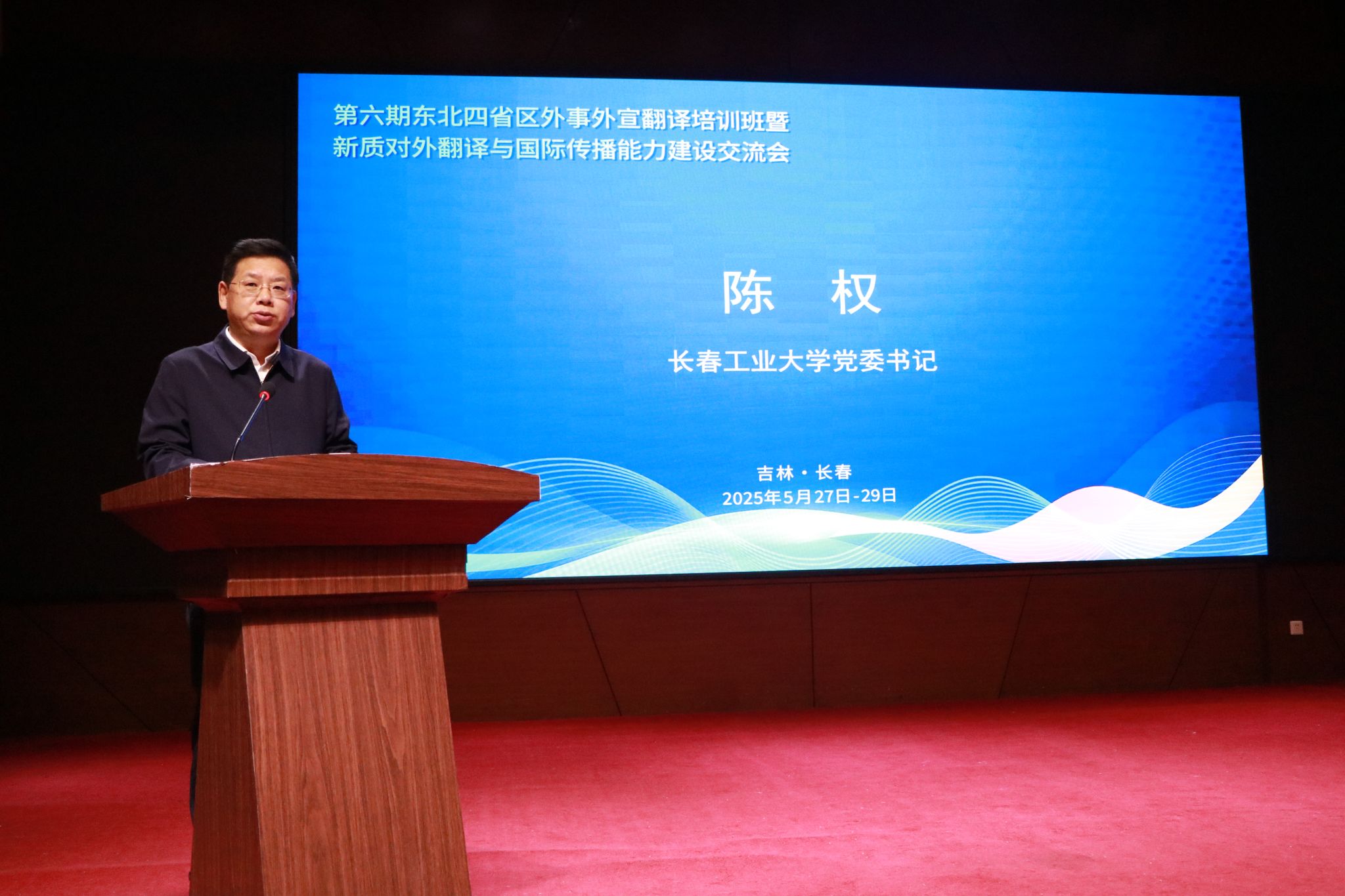 公司党委书记陈权代表公司致辞,对联合主办单位的信任与支持表示感谢,并介绍了公司的发展概况。同时指出,本次培训班与交流会,正是立足时代之需、发展之要,旨在以“新质翻译力”赋能国际传播实践,以专业交流碰撞思想火花,为外事工作者与高校教师搭建共学、共研、共进的平台。