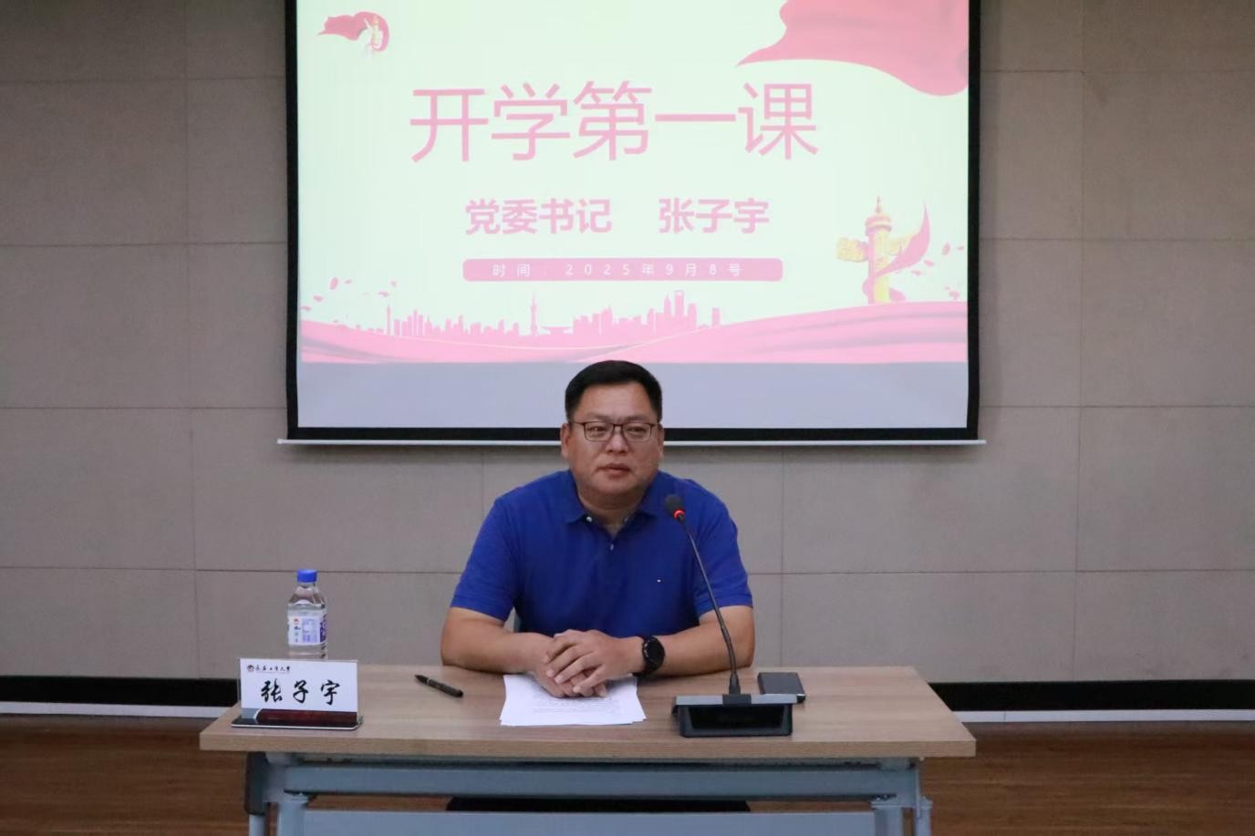 本网讯(通讯员 袁雪妍)为助力2025级新生明确征程方向、以初心校准大学航向、用担当开启成长新程,9月8日,外国语公司党委书记张子宇在公司多功能报告厅,为新生讲授“开学第一课”:校史润初心,担当启新程。