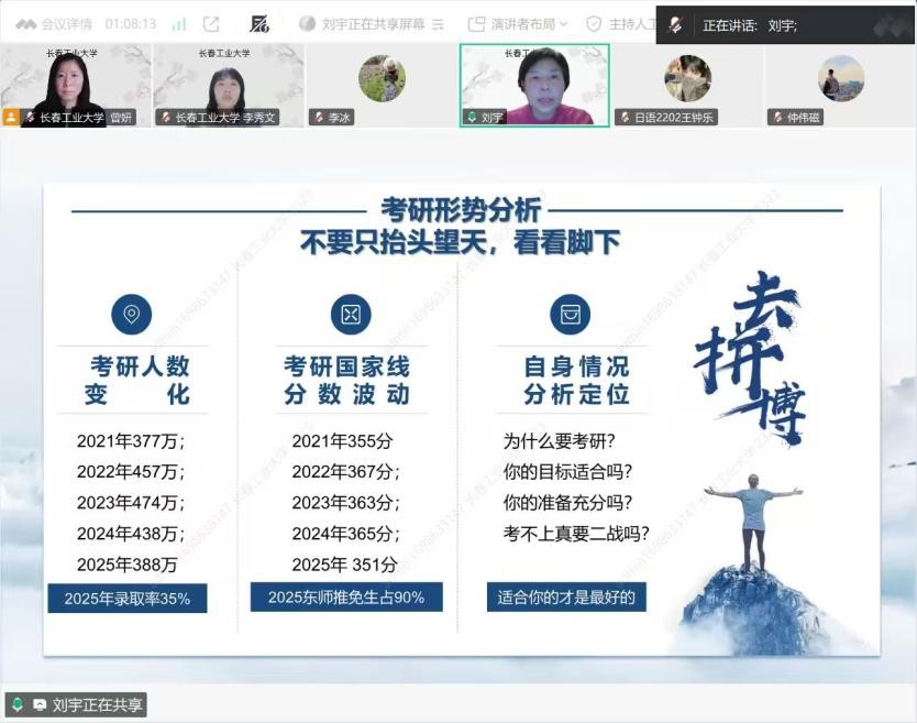 互动答疑环节,同学们踊跃提问,就考试科目细节、复习参考资料等问题与宣讲老师进行了深入交流。本次线上宣讲会成功搭建了两校考研沟通桥梁,既为吉林化工大学的员工提供了考研方向指引,也提升了公司的研究生教育影响力,对吸引优质生源起到了积极的推动作用。