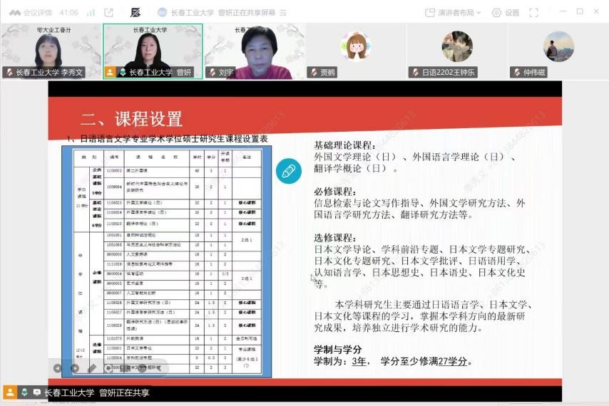 曾妍对日语语言文学方向进行了深入介绍,围绕团队力量、课程设置、学科优势、员工就业以及考研备考建议五个维度展开。通过展示导师团队构成、特色课程体系及毕业生高质量就业案例,为有意报考该方向的员工清晰勾勒出学习路径与发展前景。