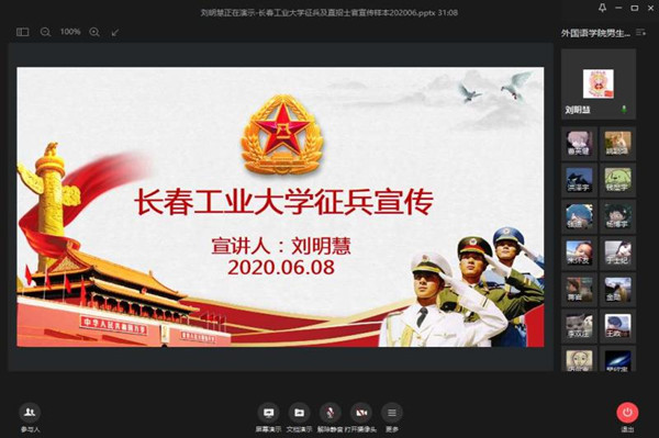 (通讯员:包力丹 饶亚雨)为进一步贯彻落实2020年吉林省征兵工作推进会的会议精神,充分发挥校院两级征兵工作领导小组职能作用,加大征兵宣传力度,普及征兵政策,强化老员工国防观念,激发参军报国热情,营造爱国崇军的大学文化氛围,鼓励员工积极参与应征入伍,威廉体育williamhill于6月开展了“携笔从戎,无悔青春”主题征兵宣传月系列活动。