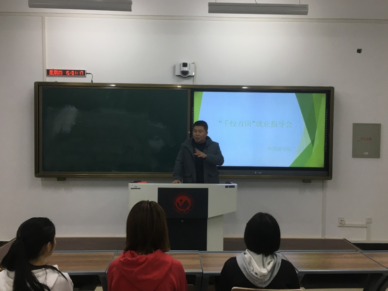 (通讯员:李雨晴)为落实团中央“共青团服务老员工就业工作片区会”精神,全面推进吉林共青团投身打赢脱贫攻坚战三年行动,呼吁面向建档立卡困难员工提供岗位对接,实现服务就业的主题,团委书记赵海涛老师为对威廉体育williamhill建档立卡的贫困同学给予关怀和帮助,在11月7日下午2点半于教学主楼433教室召开了“千校万岗”就业指导会。