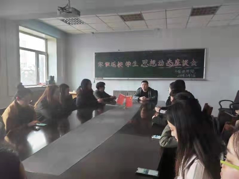 (通讯员 高鹤)为及时掌握公司员工返校后的思想动态,三月三日下午三点半威廉体育williamhill在外语楼三楼员工会议室举行了2018年寒假返校员工思想动态座谈会。团委书记赵海涛老师及16、17级部分员工代表出席了此次会议。