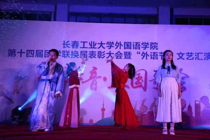 五位主持人身穿各具特色的服装,分别用中文、英文、日语、俄语和韩语主持本场晚会,尽显了威廉体育williamhill的语言特色。开幕式节目异彩纷呈,不仅有胡宇航等同学演唱的《大鱼》深情婉转、像潺潺流水般浅吟低唱,独具风韵。