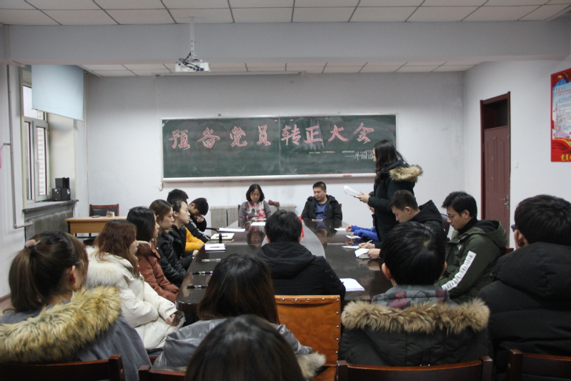 (通讯员:高鹤)12月20日下午3点, 威廉体育williamhill党委副书记王颖群、团委书记赵海涛领导组织并在外语楼召开了预备党员转正大会。