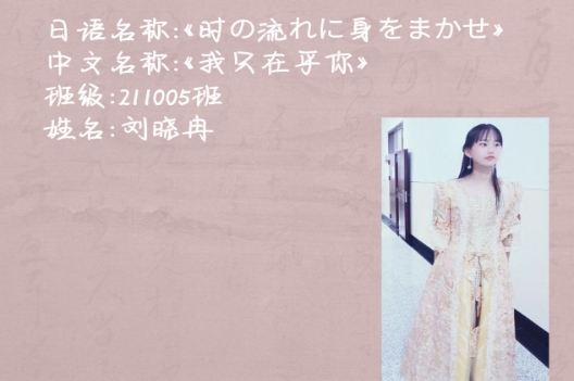选曲感想:近来,由于新冠疫情形势严峻,封寝管理期间,生活有些枯燥,心情难免烦闷。公司值此之际举办日语歌唱大赛,给我们无聊的寝室生活增添了许多乐趣。我个人非常喜欢日本昭和时期的著名女歌手中森明菜,平时也很爱听她的歌,其中《難破船》是我最喜欢且拿手的歌,所以选了这首歌参加比赛。