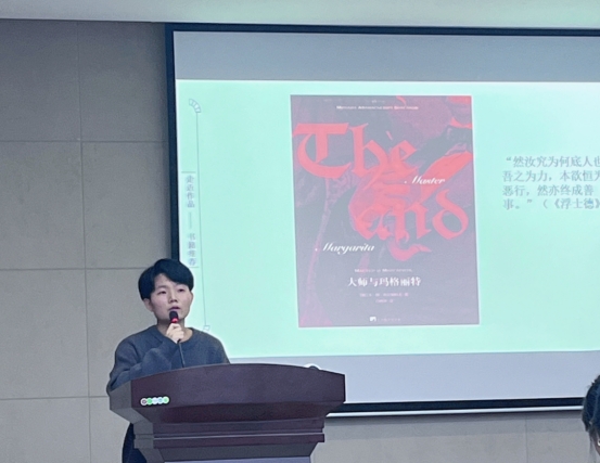 2021级外国语言学及应用语言学宋炳辉分享的《悉达多》分为两部,第一部是悉达多觉醒前的故事,第二部是世俗篇。2021级日语语言文学张存货,《春琴抄》是日本近代唯美主义文学的杰出代表作家谷崎润一郎的作品。2021级日语语言文学吴天翔,《蛤蟆先生去看心理医生》的作者是罗伯特·戴博德(英)。2022级外国语言学及应用语言学赵鸿博,《活着》是余华1992年出版的长篇小说。2022级外国语言学及应用语言学程敏,《平凡的世界》是中国作家路遥所作的长篇小说。该书共三部,以中国70年代中期到80年代中期十年间为背景,通过复杂的矛盾纠葛,刻画了当时社会各阶层众多普通人的形象,全景式地表现了中国当代城乡社会生活。2022级俄语语言文学刘丽,《大师与玛格丽特》是前苏联作家米哈伊尔·阿法纳西耶维奇·布尔加科夫的作品。