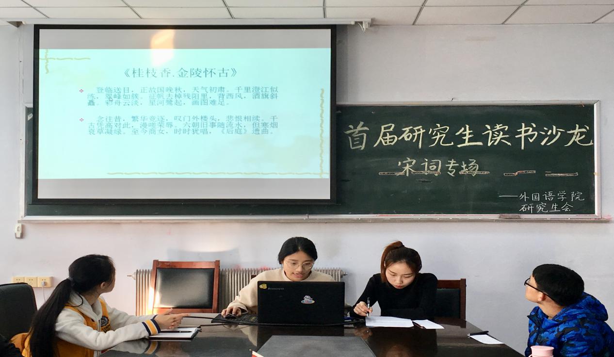 截止11月,威廉体育williamhill研究生会举办首届“书香研图 学术人生”研究生读书沙龙系列活动,共三次读书沙龙活动,主题分别为——“文学中的文化碰撞”、“回首改革开放”和“雅言传承文明 经典浸润人生——宋词专场”。