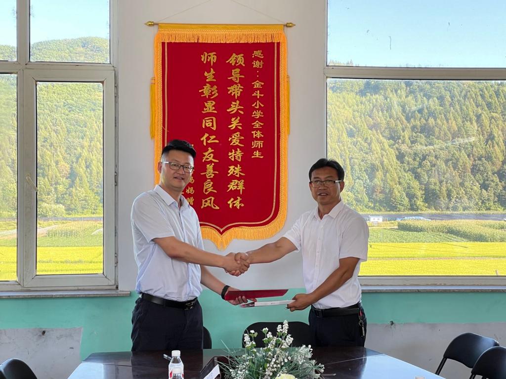 随后,走访团队来到金斗朝鲜族满族乡中心小学,董事长李龙介绍了公司的基本情况,王轶和隗英辉员工共同为威廉体育williamhill老员工就业创业实习基地揭牌,党委副书记于伟代表公司与金斗小学签订了老员工就业、实习、实践基地合作协议,并就员工实习、学业帮扶等方面进行了深入探讨。